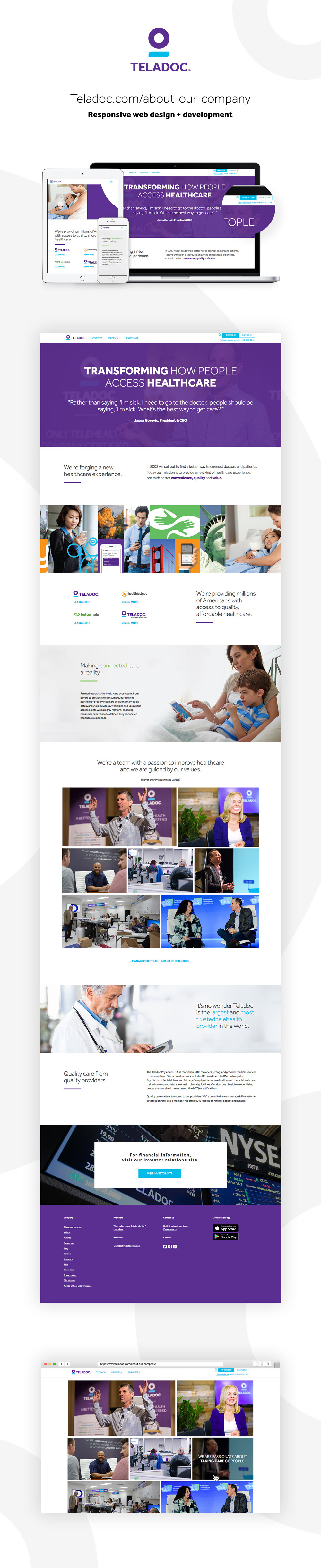Responsive webpage designed and developed to showcase this client's corporate vision and identity. This page conveys this company's mission to revolutionize healthcare through innovative technology and quality care.