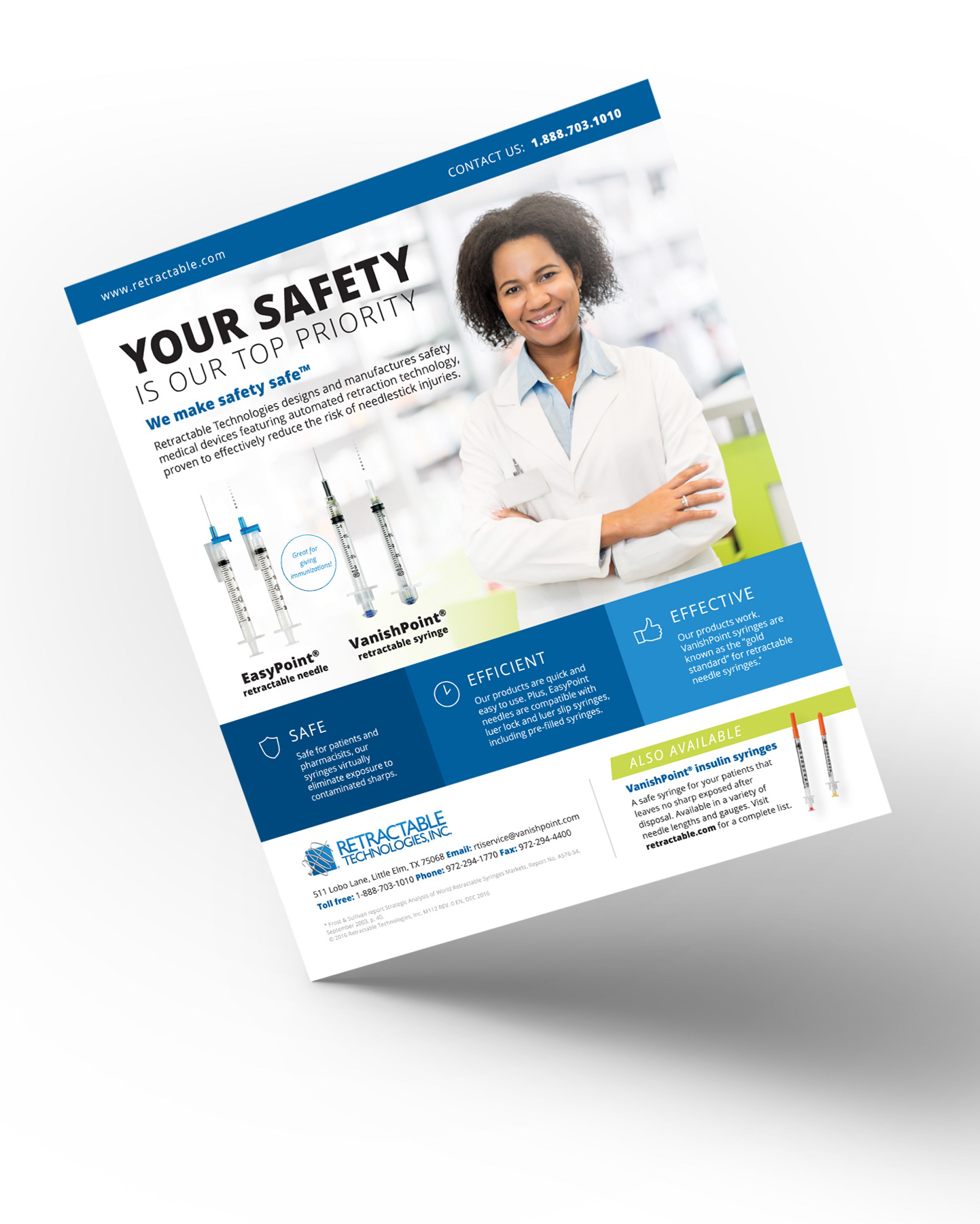 Full page magazine ad designed to market medical devices to pharmacists and clinical audiences.